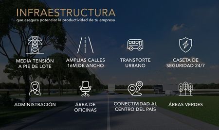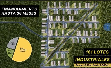 Un desarrollo de 161 lotes de uso industrial, de 1,000m2 hasta 2,500m2. Divididos en un área de