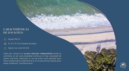 -Playa de 30 metros (Desde el terreno al mar) y tienes hasta la carretera todo para ti, el terreno publicado tiene un fondo de 143.6 metros de fondo pero hay mas grandes y mas chicos...Lo que quieras y busques, el precio no cambia porque lo que se vende es el metro lineal de playa