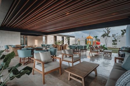 -Terraza techada de usos múltiples con capacidad para 50 personas, con mobiliario, barra de servicio y baños para invitados.