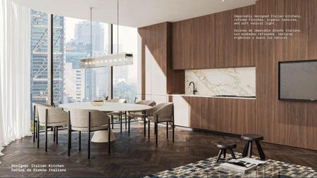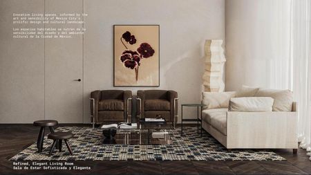 Interiores Sofisticados: Diseños que destacan líneas limpias y materiales naturales ricos, complementados por una artesanía moderna que captura la energía dinámica de la ciudad.