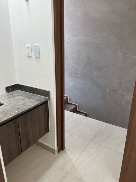 Gabinetes de baño con cubierta de granito / mármol y lavabos de sobreponer. Escaleras con piso cerámico (Tobaco color madera).
