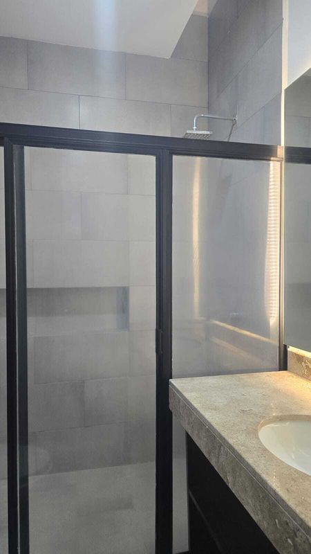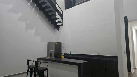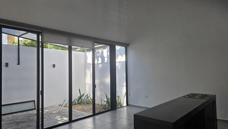 Cuenta con dos recamaras, dos baños completos una recamara y un baño están en planta baja. Jardín /terraza, jardín interior, cocina con parrilla y meseta de granito, refrigerador, gavetas y cajones de madera, área de lavadora, secadora y batea, cochera techada para dos vehículos.