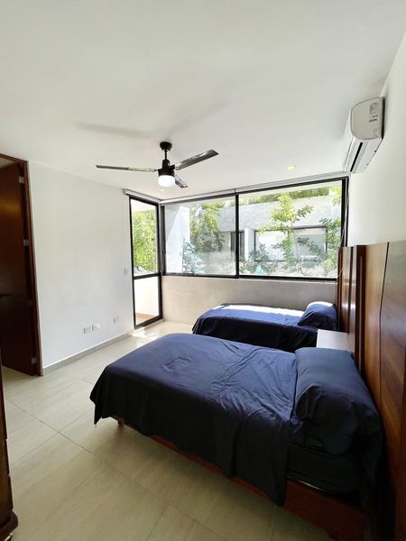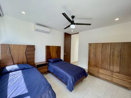 Encontrarás también 2 recámaras amplias con su propio baño completo, la principal con closet vestidor, ámbas con su terraza privada, aires acondicionados, ventiladores, pantallas led y muebles adecuados a los espacios de excelente calidad .