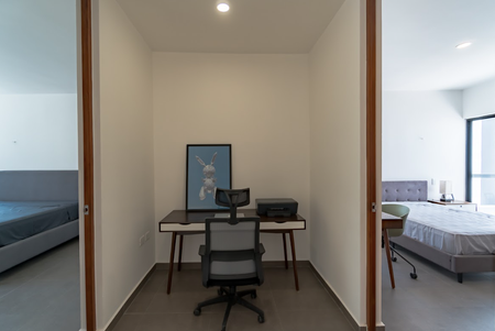 Recámara secundaria con closet lineal, baño y