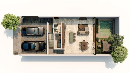 •Cochera de 6.85 x 5.00 m con acceso principal.