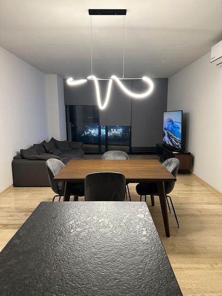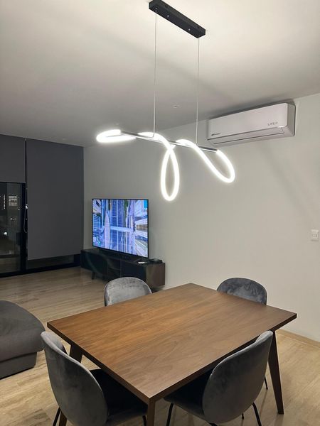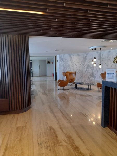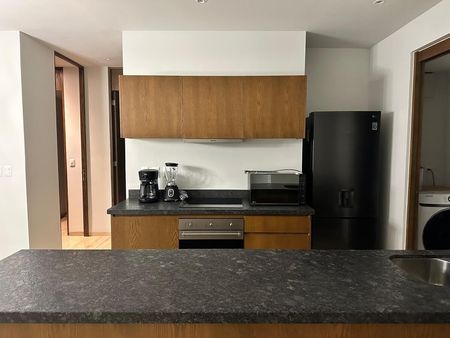 El departamento consta de 2 recamaras con pisos de mármol, cocina con meseta de granito y equipamiento de la marca smeg (parrilla y horno), area de lavado, 2 baños completos, closets y aires acondicionados en todo el departamento.