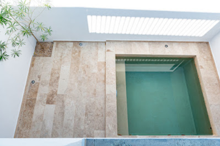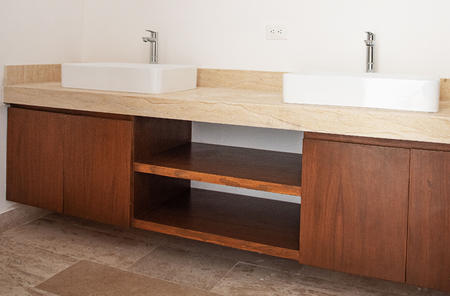 - Pisos de mármol travertino.