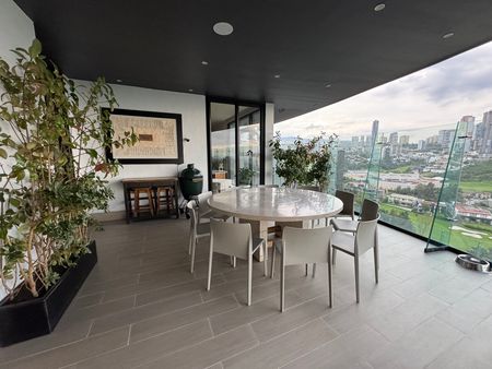 Espectacular departamento en venta en Residence, Bosque Real. Cuenta con acabados de lujo y un diseño de interiorista único. Tiene una amplia terraza con vista al campo de golf principal.