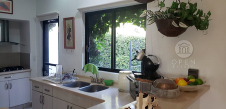 2 Terrazas. Palapa interior con asador y toma de gas para quemador/estufa. Palapa en garaje para protección de los autos, capacidad para dos. Paneles solares para calentamiento del agua de la piscina.