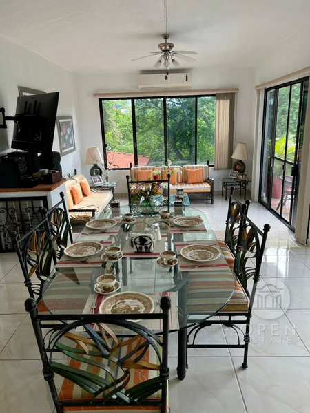 Recamara principal con balcón, medio baño para visitas. Sala con A/C y ventiladores y balcón, comedor con balcón A/C y ventiladores, cocina Integral y Cuarto de lavado y bodega.