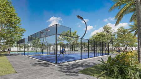 , cancha multiusos, 2 canchas de pádel, área de asadores en alberca