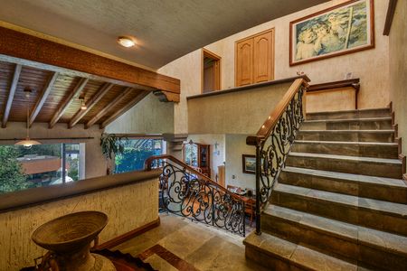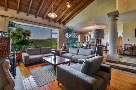 MAGNÍFICA CASA EN FRACCIONAMIENTO CON ESTRICTA VIGILANCIA Y ÁREAS VERDES MUY GENEROSAS. La casa tiene muy buen proyecto arquitectónico en desniveles, lo que permite una gran sensación de amplitud, iluminación y muy bonitas vistas. Al entrar a la casa te recibe un vestíbulo y media planta hacia abajo, tenemos la sala, el comedor, estudio, medio baño de visitas y cocina con desayunador. Otro medio nivel hacia abajo, gran salón de juegos con bar y salida al jardín. Nuevamente, partiendo del vestíbulo, medio nivel hacia arriba, tenemos 3 recámaras cada una con baño y vestidor. Tiene 3 lugares de estacionamiento techados, se pueden dejar 2 o 3 más frente a la casa; cuarto de servicio y de lavado.