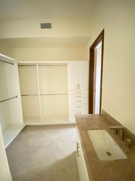 Equipada con cocina integral con granito, closets, aires céntrales, portón eléctrico, reja frontal, puertas de seguridad, hidroneumático, cisterna.