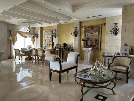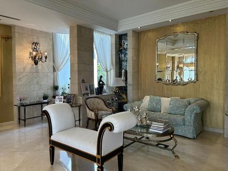 Con detalles únicos como un hall de entrada triple altura, mármol Carrara en todas las áreas, molduras en techos.