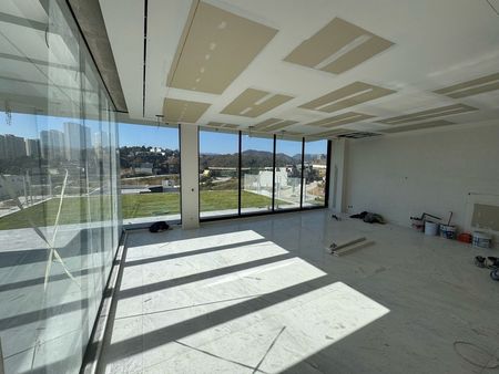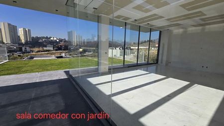 Sala, comedor, cocina, estudio, cuarto de servicio, lavandería,, seis lugares de estacionamiento, jardín.