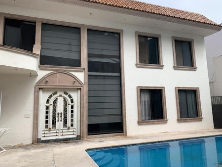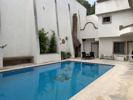 Segundo piso : Amplia Sala, área de Comedor, amplia Cocina, con espacio para Antecomedor; salón de juegos, Oficina, medio baño, Lavandería, cuarto de servicio con su baño completo, en el patio alberca y área de asador.