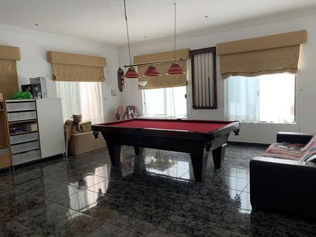 Planta Baja/ Primer Piso : Cochera para 4 carros con espacio dentro de la misma para 8; en el nivel de cochera con un Salón de juegos, 2 bodegas y un baño completo.