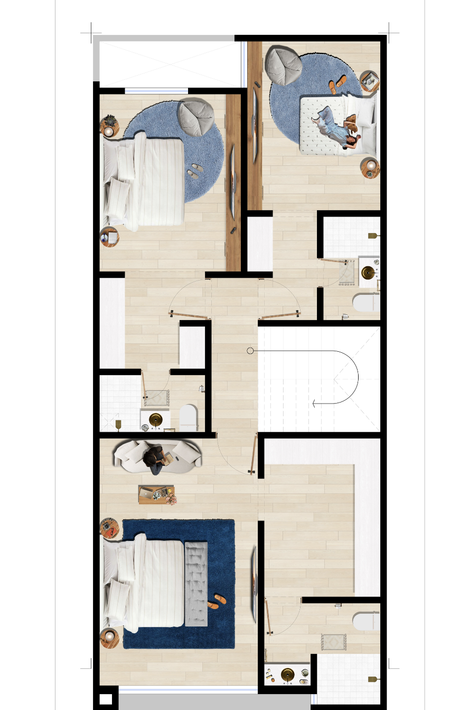 2 recamaras secundarias, cada una con baño completo y espacio para closets