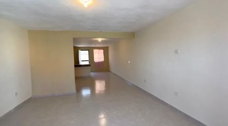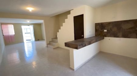 Descripción por plantas: Planta Baja: Sala-Comedor y Cocina en loft, medio baño de visitas, barra de ante comedor en cocina, lavandería en exterior, patio trasero y amplio pasillo de servicio. Planta Alta: Distribuidor; muy amplia recámara principal con gran espacio para clóset de pared, dos ventanas y baño completo también muy amplio. Dos recámaras secundarias de muy buen tamaño también con estupendo espacio para clóset de pared y baño completo que comparten las recámaras secundarias.
