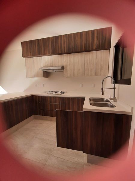 BAÑO DE VISITAS, CLOSET DE VISITAS, COCINA AMPLIA CON CUBIERTA DE CUARZO, LAVABO CON DOBLE TARJA Y LLAVE MONOMANDO