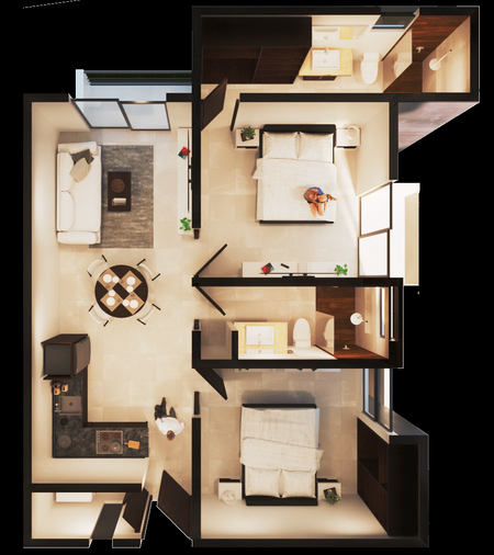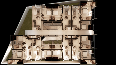 Está conformado por un conjunto de departamentos en 3 niveles que se fusionan con áreas comunes amplias y prácticas rematando con un Roof Top para reuniones sociales amenas con los amigos.