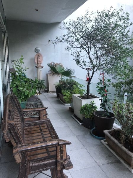Los pisos del departamento son de mármol y duela, la carpintería es de encino.