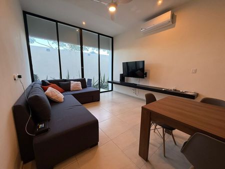 Equipado con cocina integral vestida, closet con vestidor, calentador electrico, parrilla electrica.
