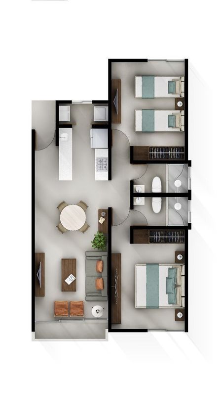 -De 2 recámaras separadas