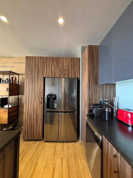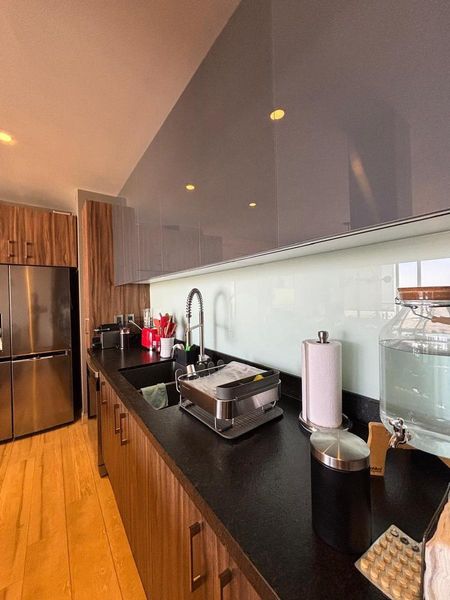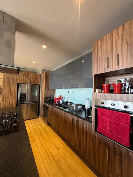 Cocina equipada y espaciosa área social: La cocina de diseño moderno está completamente equipada, ideal para quienes disfrutan de cocinar y convivir. La sala y el comedor son perfectos para reuniones o simplemente disfrutar de un ambiente acogedor.