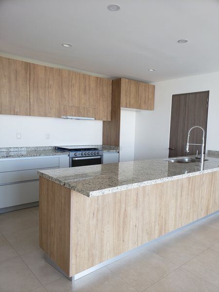 Cocina equipada con cubierta de granito, doble tarja.