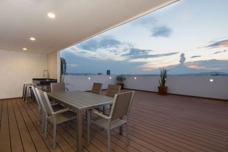 El departamento cuenta con 3 recamaras, 3 baños, sala, comedor, cocina integral cerrada, cuarto de lavado, lobby y roof garden.