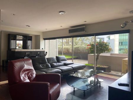 Excelente y moderno departamento en SANTA FE, disfruta de este amplísimo departamento de lujo en RESIDENCIAL LA CAMPIÑA. Cuenta con amplias terrazas y excelentes vistas, 2 recámaras cada una con terraza, la principal con baño y vestidor, la 2a con baño y amplio closet, cuarto de servicio con baño, 3 estacionamientos independientes techados, bodega de 5m2, cantina, family room, cuarto de lavado, mrmol en baños y cocina, duela de manerda y zoclo de mármol.