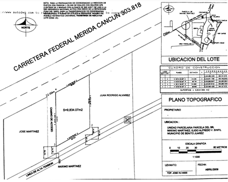 -Superficie terreno: 9,834.07 m2 (88 m x 124 m) polígono irregular