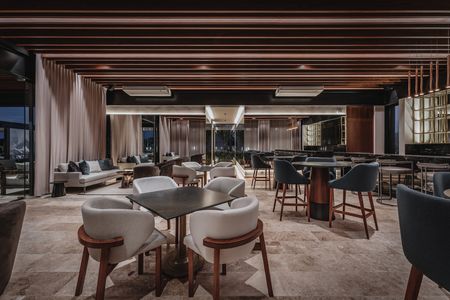 -Terraza techada de usos multiples con capacidad para 50 personas, con mobiliario, barra de servicio y baños para invitados.