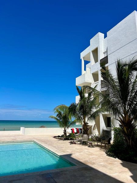 Departamento en planta baja en condominio frente al mar en chicxulub puerto