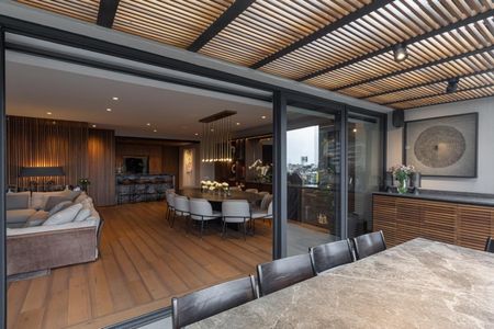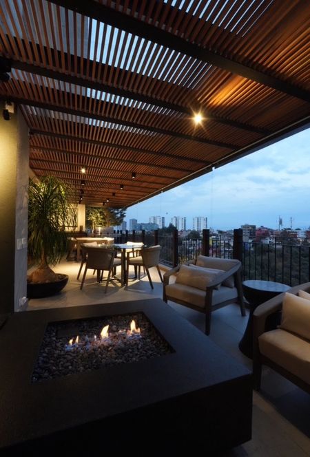 El Departamento consta con estancia amplia con bar, sala, comedor, con una terraza muy amplia con firepit antecomedor, 3 amplias Recámaras con baño la principal también tiene terraza así como la oficina y una de las recamaras.