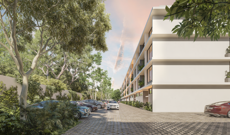 Rosenda en una colección de 51 departamentos distribuidos en 3 niveles y en 8 estilos diferentes, ubicado el norte de Mérida en Temozón Norte.