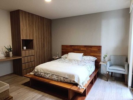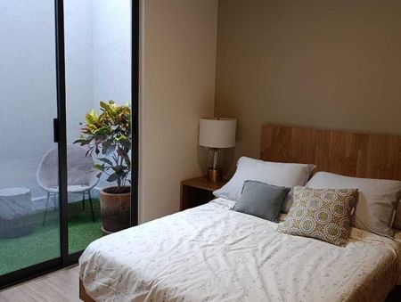 Recamara principal con closet y baño, con acceso a patio trasero.