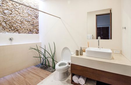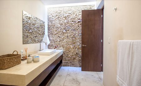 Área de lavado y acceso a baño completo de la recámara secundaria
