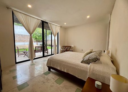 Amplia recámara principal con vista y acceso al área verde con terraza techada y amplio baño completo