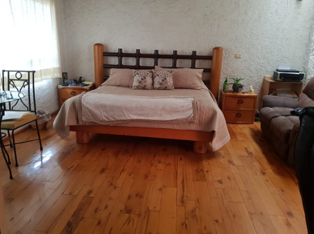 Hermosa y exclusiva residencia ubicada dentro de un terreno de 3000 m2 mas 2000 m2 concesionados para estacionamiento, construcción de 900 m2. La casa consta de 2 plantas. Planta baja: Recibidor, sala, comedor, medio baño, cocina totalmente equipada, un antecomedor y alacena. Planta alta: 3 recamaras muy amplias con vestidor y baño cada una. La casa tiene pisos y techos de importación de cedro canadiense. Cuenta con una espectacular vista a través de los enormes ventanales que dan hacia el jardín y un hermoso lago, así como la vista panorámica hacia el Valle de la CDMX. Cuenta también con otra construcción independiente en obra (aprox 300 m2) donde quedaran 6 suites, cada una contará con cocineta, vestidor y baño. El jardín cuenta con baños independientes para hombre y mujeres, así como 2 enormes cuartos de servicio cada uno con su baño. Una extraordinaria propiedad para gustos exigentes. Esperamos su llamada, sera un placer atenderle!!!