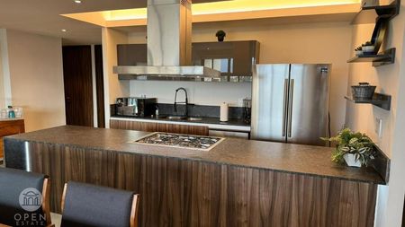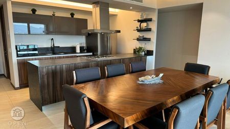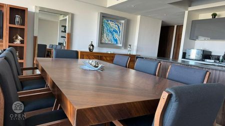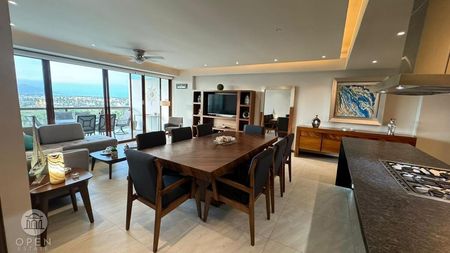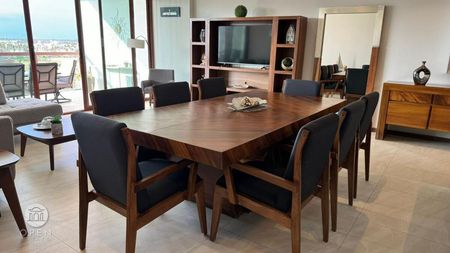 El Departamento está totalmente equipado con muebles de alta calidad, cuenta con cuatro habitaciones, tres baños completos, cocina integral con todos los servicios, sala y comedor. Amplia terraza para disfrutar de los alimentos y de la vista.