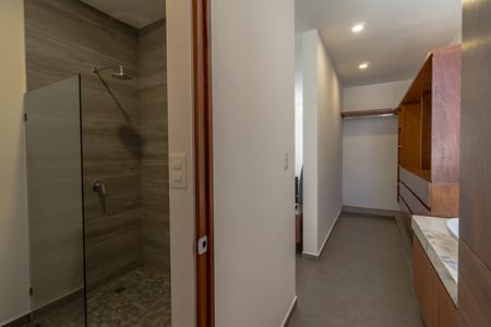 Recámara principal con closet vestidor y baño