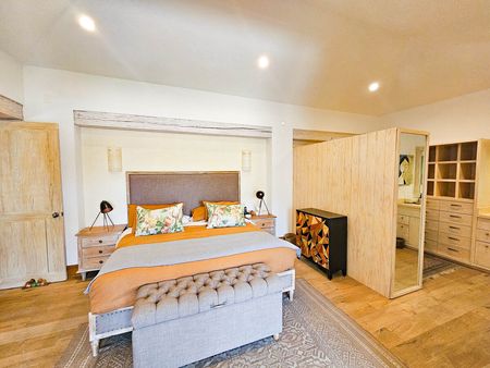 En la planta alta, se encuentra la recámara principal con vestidor, baño, jacuzzi de hidromasaje y balcón. Junto a la recámara principal está un espacio dedicado a oficina y a gimnasio con vista al espectacular parque de enfrente de la casa. Caminando por el pasillo te conduce al elevador y a un recámara adicional, con baño en suite y closets amplios. Además de contar con una oficina o estudio que se conecta con un family room.