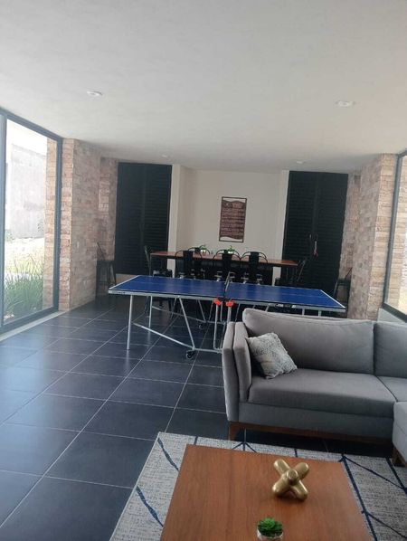 Cuenta la privada con alberca , gym, salón de usos múltiples con sale y comedor además de su mesa de Ping pong , terraza y juegos infantiles.