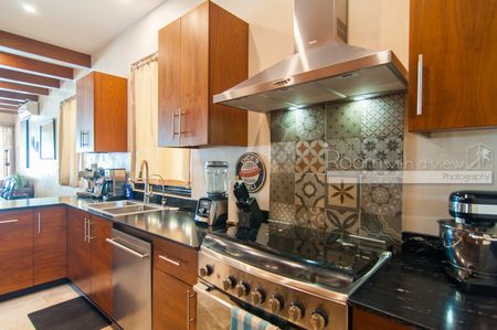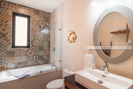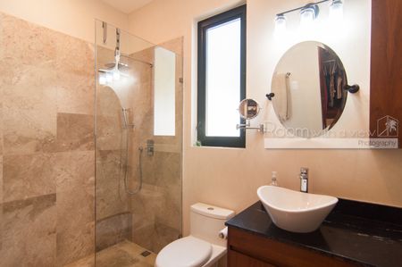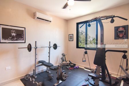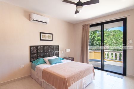 Esta lujosa villa de 4 recámaras y 2.5 baños combina un diseño elegante con acabados de alta calidad. Cuenta con vigas expuestas en el techo, puertas, clósets y muebles hechos a medida en madera de Tzalam con cajones de cierre suave, así como muros con acabado chukum maya, encimeras de granito, pisos de mármol y una escalera decorada con azulejos de Talavera. Dos habitaciones en la planta alta se abren a un amplio balcón, y un cuarto de lavado con lavadora y secadora ofrece funcionalidad adicional. Como beneficio adicional, la parte delantera de la casa está cableada para un cargador de automóvil eléctrico 220 para que cargar su automóvil sea muy fácil.