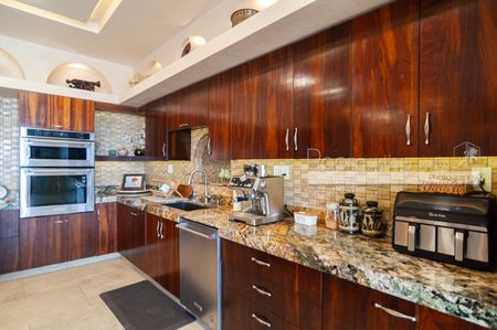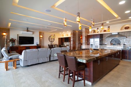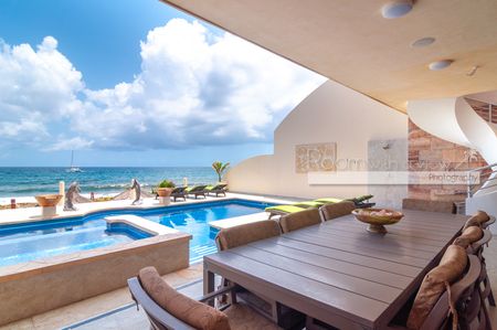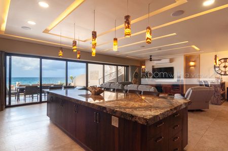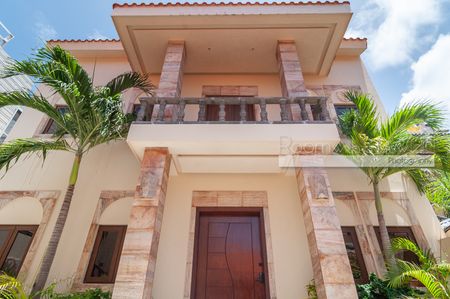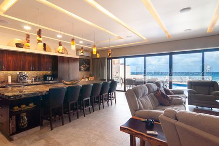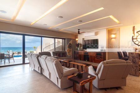 Descubra lo mejor de la vida costera con esta lujosa villa frente al mar de 5 recámaras y 5.5 baños, ubicada en el exclusivo residencial junto al mar de Puerto Aventuras. Combinando elegancia con confort moderno, cuenta con puertas de madera tallada, acabados de alta gama y detalles de diseño cuidadosamente pensados en cada espacio. La casa incluye una cocina de chef con isla, área de bar independiente y una amplia sala iluminada por el sol. También dispone de oficina, cuarto de servicio, cuarto de lavado, enorme despensa y gimnasio privado. La recámara principal ofrece un lujoso baño en suite con vestidor y jacuzzi, creando un refugio privado y sereno dentro de esta impresionante residencia.