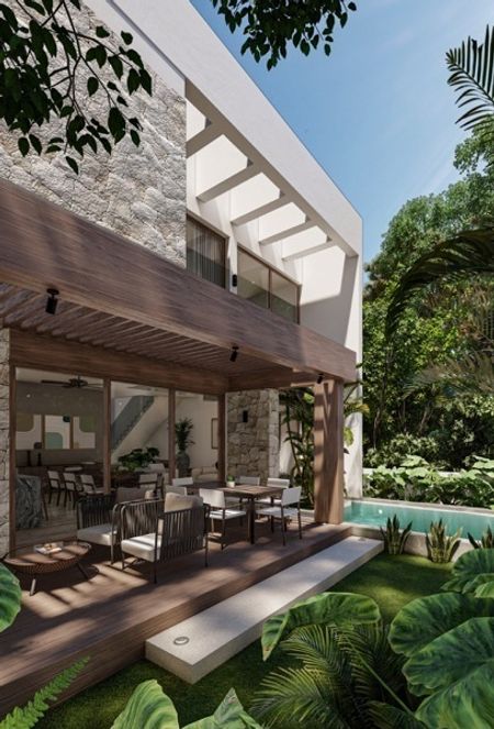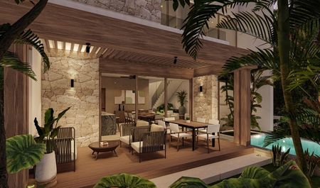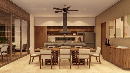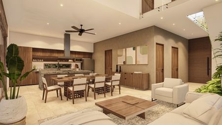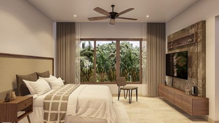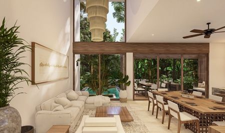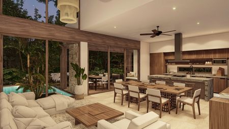 Estas hermosas villas de 3 habitaciones ofrecen diferentes diseños y opciones que se adaptan a sus necesidades, con cuatro prototipos distintos para elegir. Cuentan con un diseño abierto y espacioso con ventanas de piso a techo que permiten la entrada de abundante luz natural. Todas las residencias modernas tienen una cocina totalmente equipada con isla y una sala y comedor de doble altura, llenos de luz. Las villas cuentan con un patio cubierto con alberca, asador exterior y un área de jardín, además de un amplio rooftop con jacuzzi y vistas al campo de golf y a la selva. Todas las habitaciones están equipadas con closets y algunas tienen balcones privados y baños en suite. Estas viviendas cuentan con pisos de loseta y acabados de alta calidad, duraderos y fáciles de mantener. Se ofrecen a la venta sin amueblar, pero equipadas con ventiladores de techo y aire acondicionado.