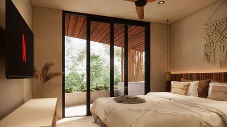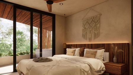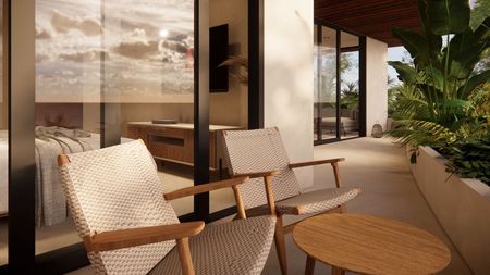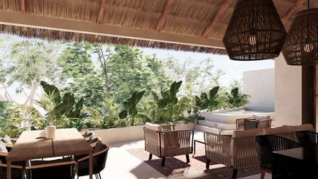 Ofreciendo la combinación perfecta de lujo y naturaleza, estos hermosos departamentos y penthouses de 2 y 3 habitaciones son perfectos para rentas vacacionales o como su propio hogar en el paraíso. Ofrecen un amplio diseño de concepto abierto y reciben toneladas de sol caribeño. Todas las residencias cuentan con cocina abierta, sala de estar y comedor y alberca privada. Las unidades de la planta baja tienen amplios jardines y parrilla, las unidades de nivel medio tienen terrazas privadas y los lujosos penthouses tienen opciones de lock-off y rooftop privado con áreas de parrilla y alberca. Estos departamentos tienen pisos de travertino y acabados de primera calidad que son duraderos y fáciles de mantener. Se ofrecen a la venta sin muebles pero equipados con aire acondicionado y closets en las recámaras.