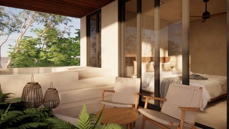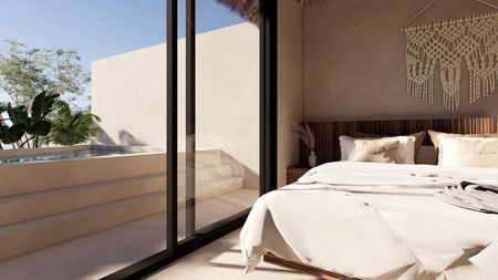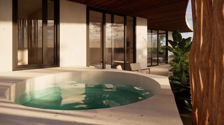 Este nuevo desarrollo cuenta con una hermosa alberca tipo cenote, hamacas, una alberca en el rooftop, gimnasio, espacio para yoga, centro holístico y estacionamiento para propietarios e invitados. El complejo es seguro con acceso controlado y seguridad las 24 horas. Esta área también ofrece acceso a Internet confiable y de alta velocidad.